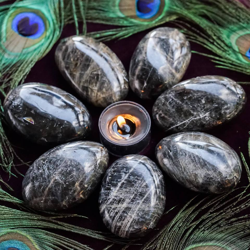 Γενικά η Φεγγαρόπετρα είναι εξαιρετικό ορυκτό για θεραπεία της θηλυκής κακοποίησης σε οποιασδήποτε μορφή. Η μαύρη Φεγγαρόπετρα είναι το απόλυτο ορυκτό της μήτρας. Το μυστήριο, το βάθος, το ανεξήγητο της δύναμής της συμβολίζονται με αυτό το ορυκτό. Θέματα μπλοκαρίσματος από τη σκιά σε σχέση με τη θηλυκή ενέργεια μπορούν να δουλευτούν μαζί της, όπως και καταστάσεις όπου από το σκοτάδι θέλουμε να αναδυθούν ξανά στο φως και να τους δώσουμε μία νέα θεραπευμένη προοπτική και πορεία.